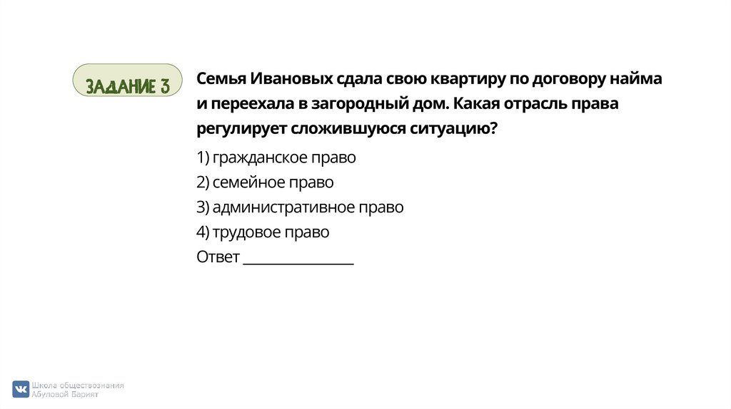 Семья Ивановых сдала свою квартиру по договору наймаи переехала в загородный дом. Какая отрасль права