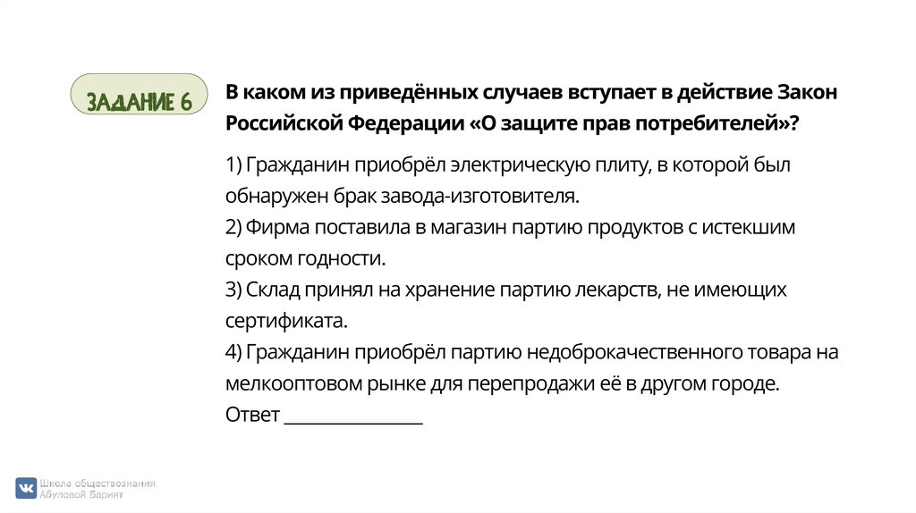 В каком из приведённых случаев вступает в действие ЗаконРоссийской Федерации «О защите прав потребителей»?