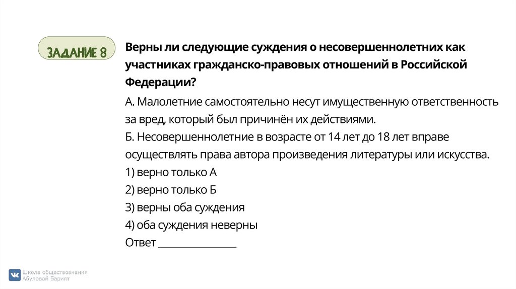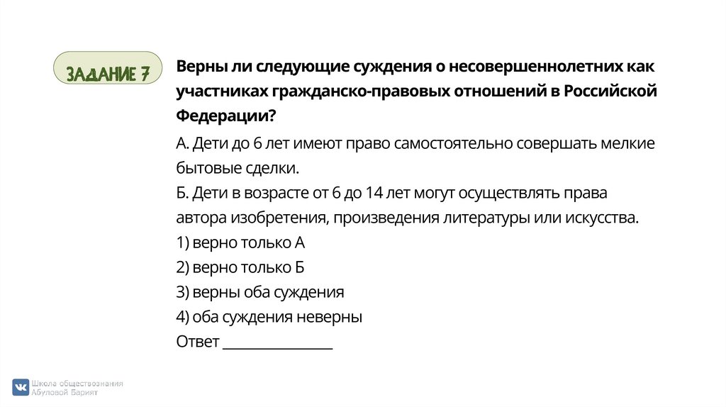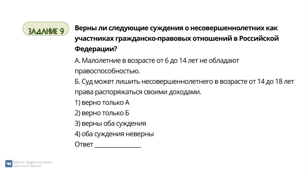 Верны ли следующие суждения о несовершеннолетних какучастниках гражданско-правовых отношений в Российской