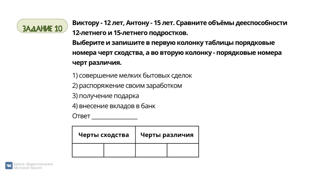 Виктору - 12 лет, Антону - 15 лет. Сравните объёмы дееспособности12-летнего и 15-летнего подростков.