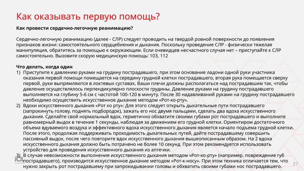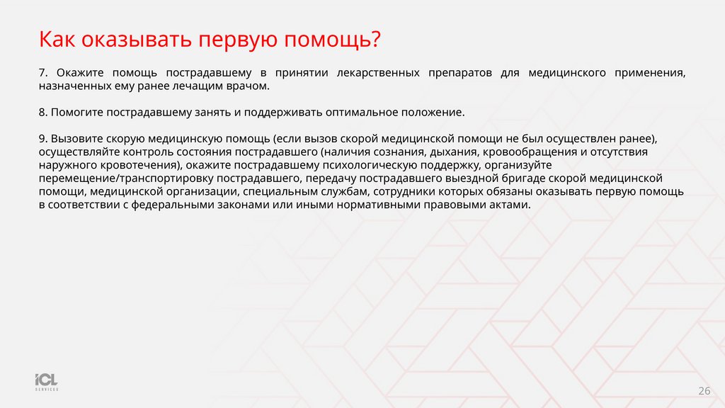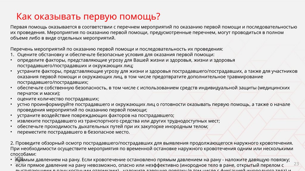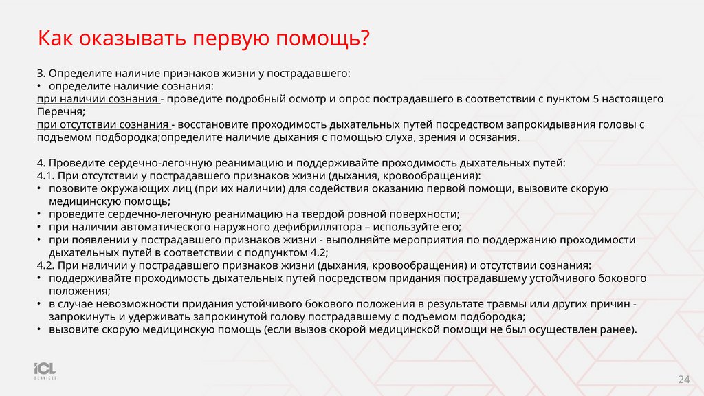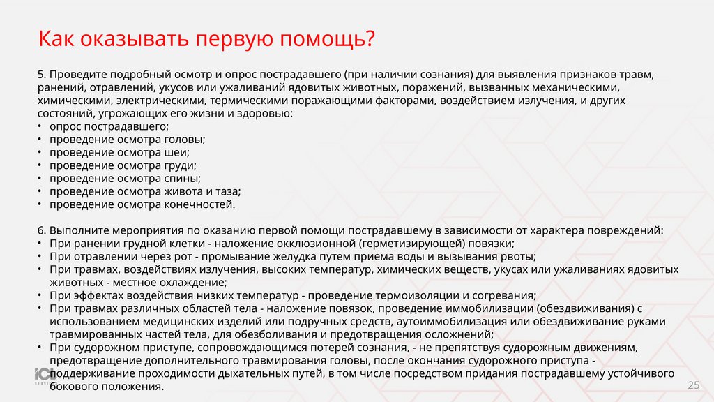 • Приступите к оказанию первой помощи согласно Перечню мероприятий по оказанию первой помощи и вызовите