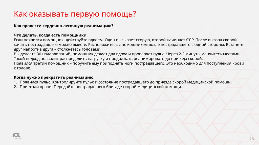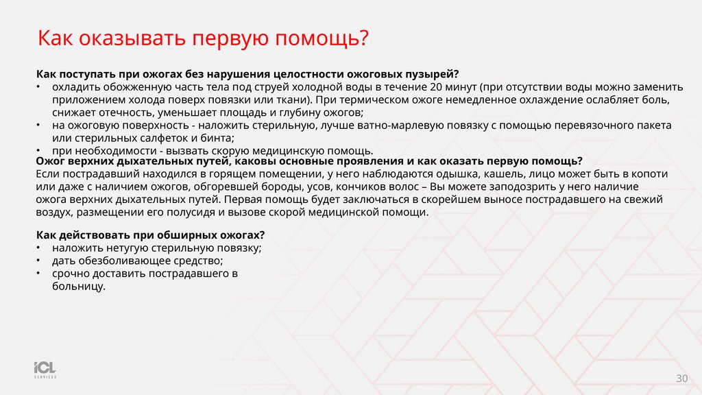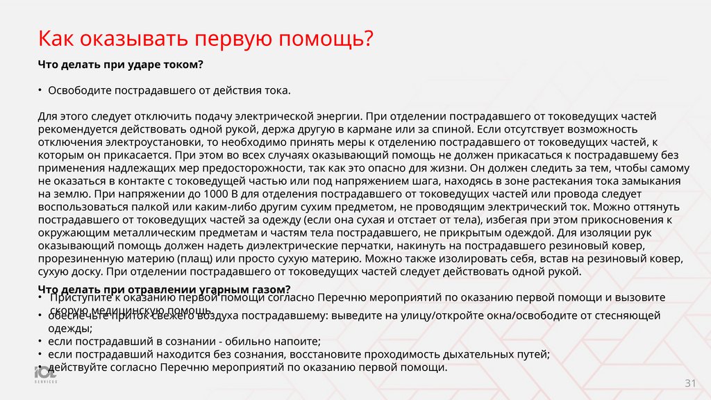 • действуйте согласно Перечню мероприятий по оказанию первой помощи.