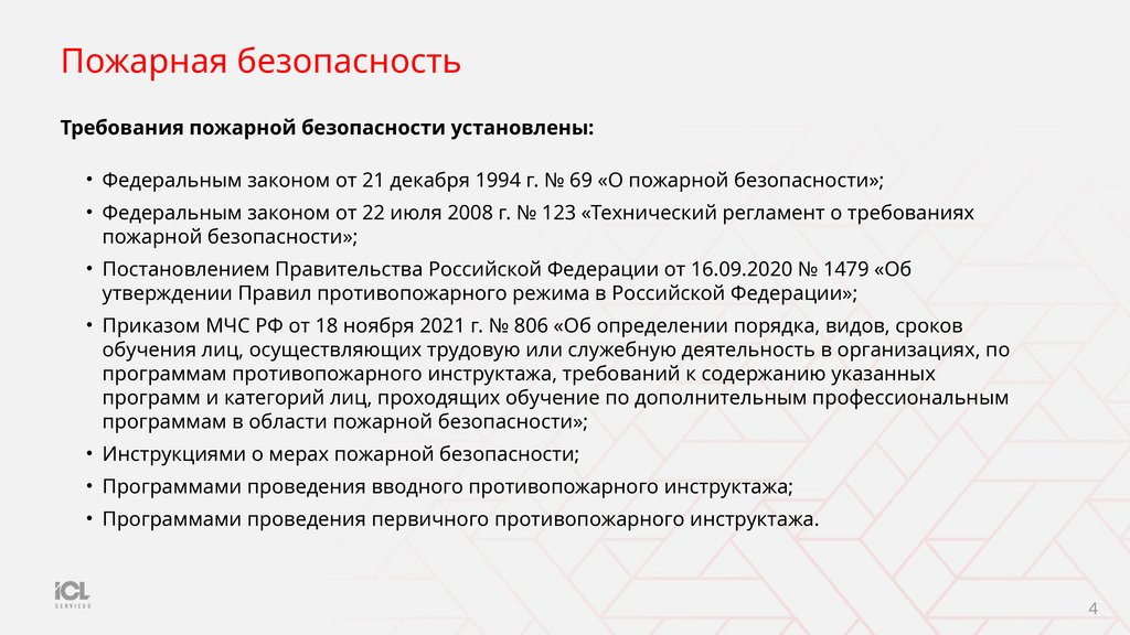 • Федеральным законом от 21 декабря 1994 г. № 69 «О пожарной безопасности»;
