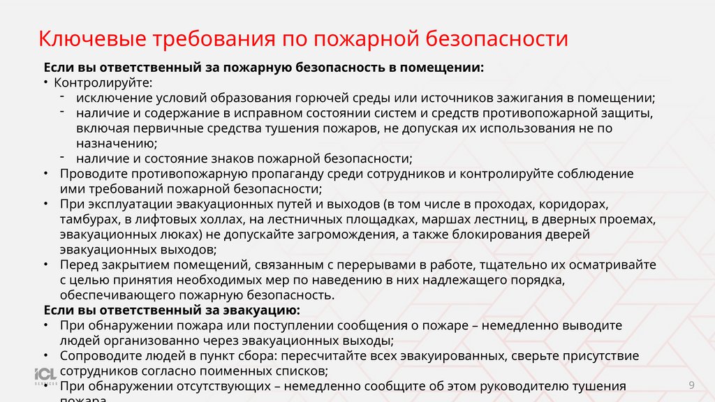 Ключевые требования по пожарной безопасностиЧто вы обязаны делать?