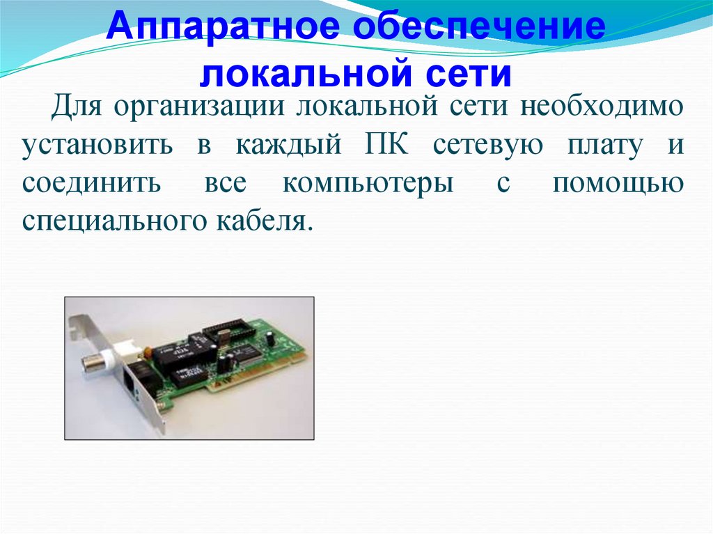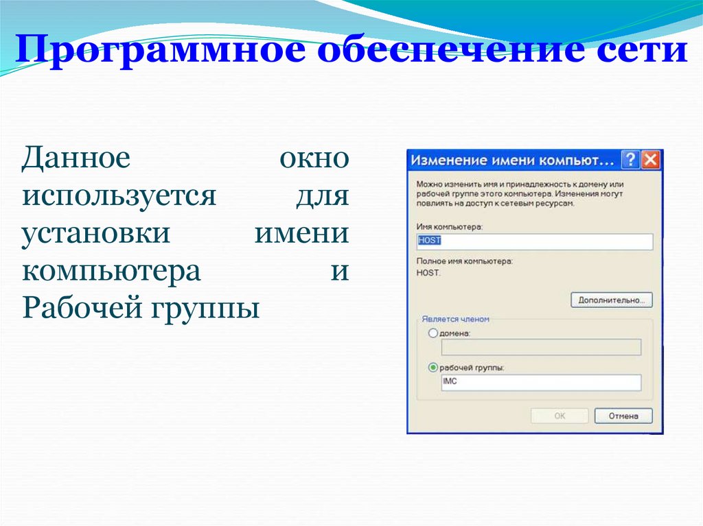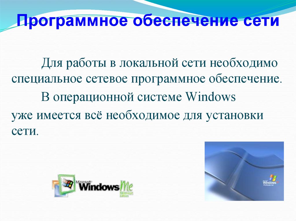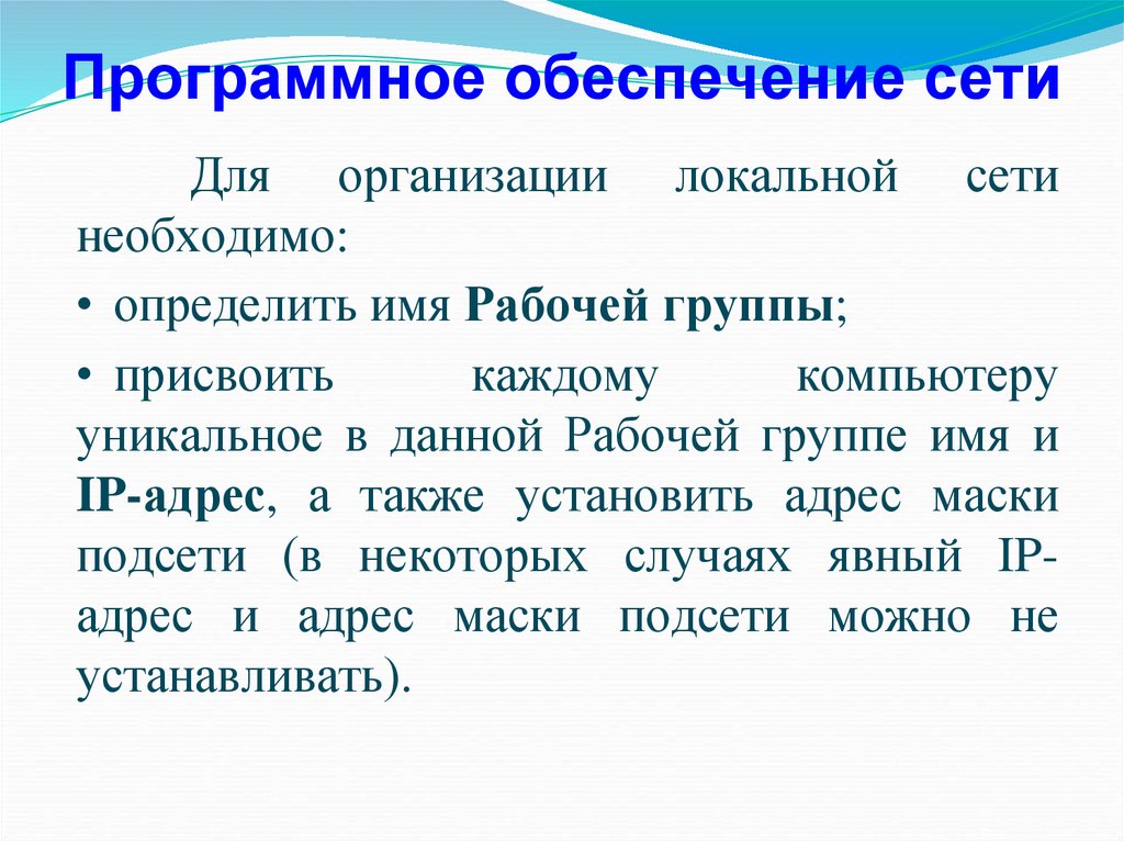 Программное обеспечение сетиДля работы в локальной сети необходимо