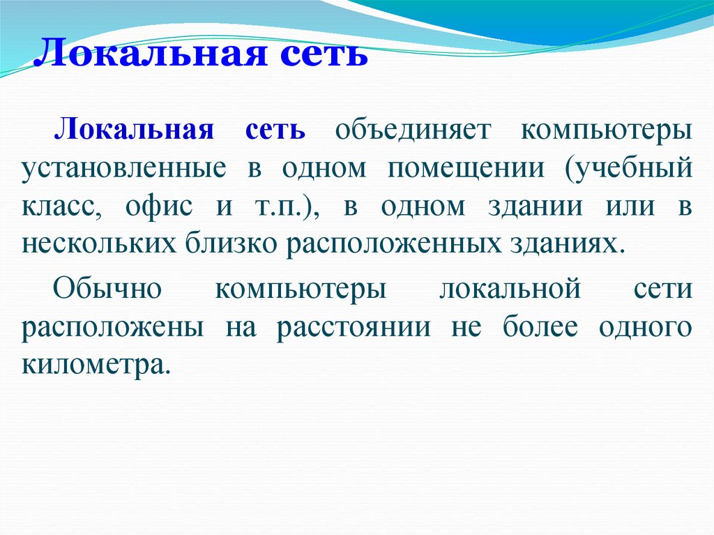 Локальная сетьЛокальная сеть объединяет компьютеры