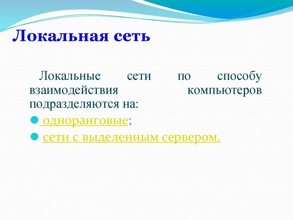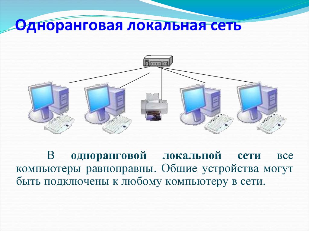 Одноранговая локальная сетьВ одноранговой локальной сети все