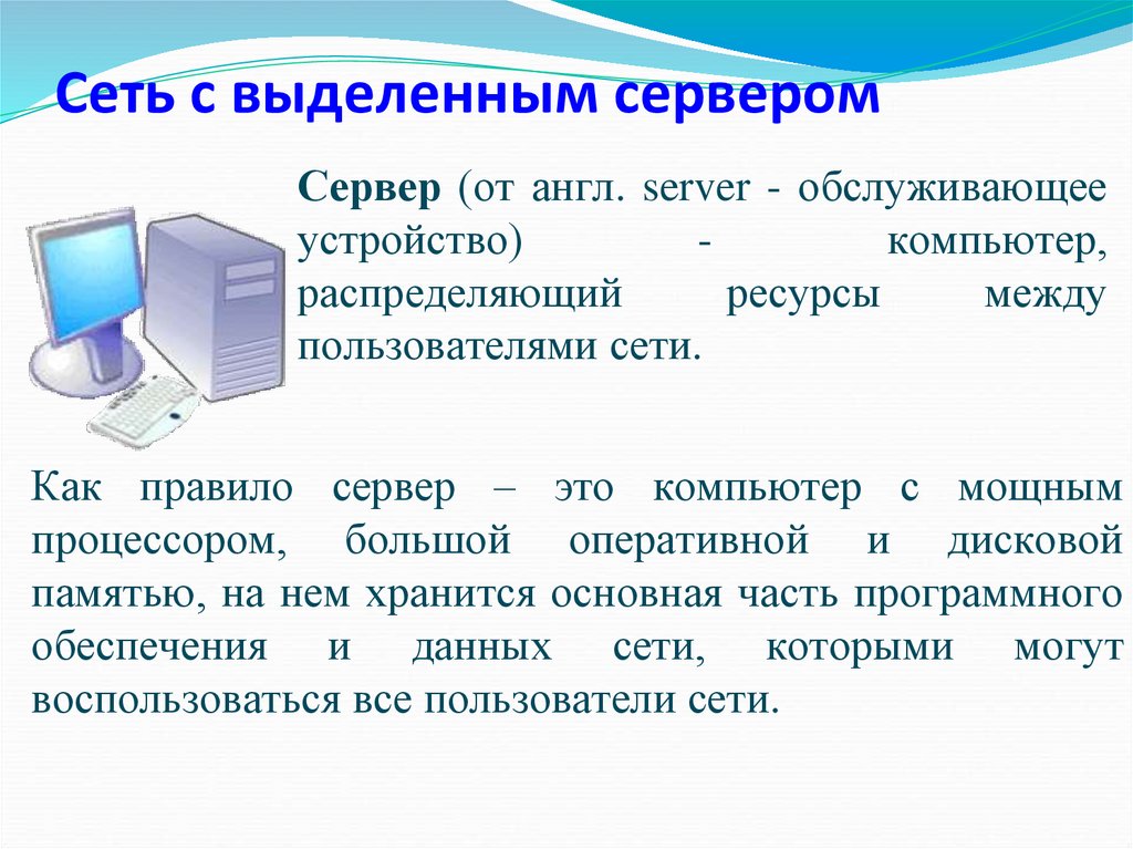 Сеть с выделенным серверомСервер (от англ. server - обслуживающее