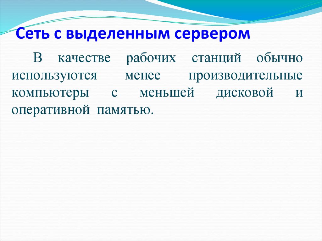 Сеть с выделенным серверомВ качестве рабочих станций обычно