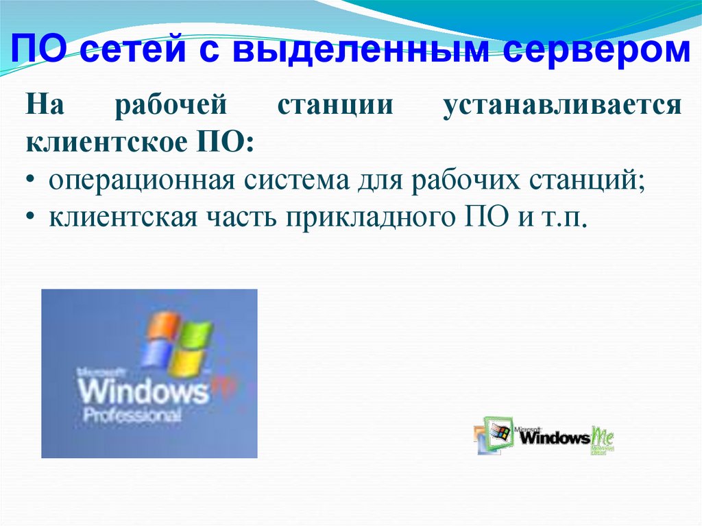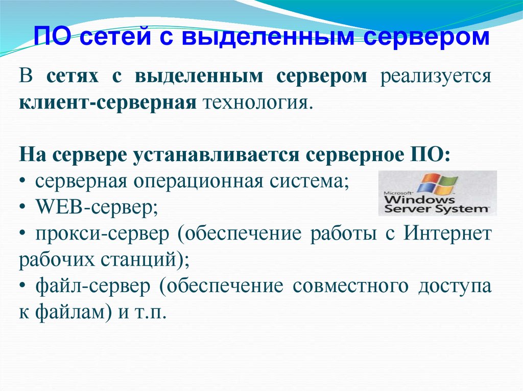 ПО сетей с выделенным серверомВ сетях с выделенным сервером реализуется
