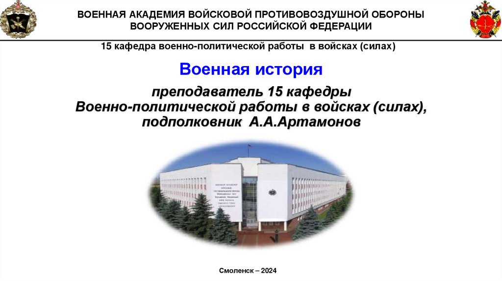 ВОЕННАЯ АКАДЕМИЯ ВОЙСКОВОЙ ПРОТИВОВОЗДУШНОЙ ОБОРОНЫВООРУЖЕННЫХ СИЛ РОССИЙСКОЙ ФЕДЕРАЦИИ