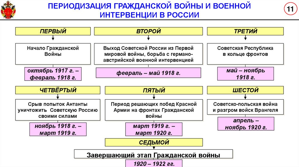 ПЕРИОДИЗАЦИЯ ГРАЖДАНСКОЙ ВОЙНЫ И ВОЕННОЙИНТЕРВЕНЦИИ В РОССИИ
