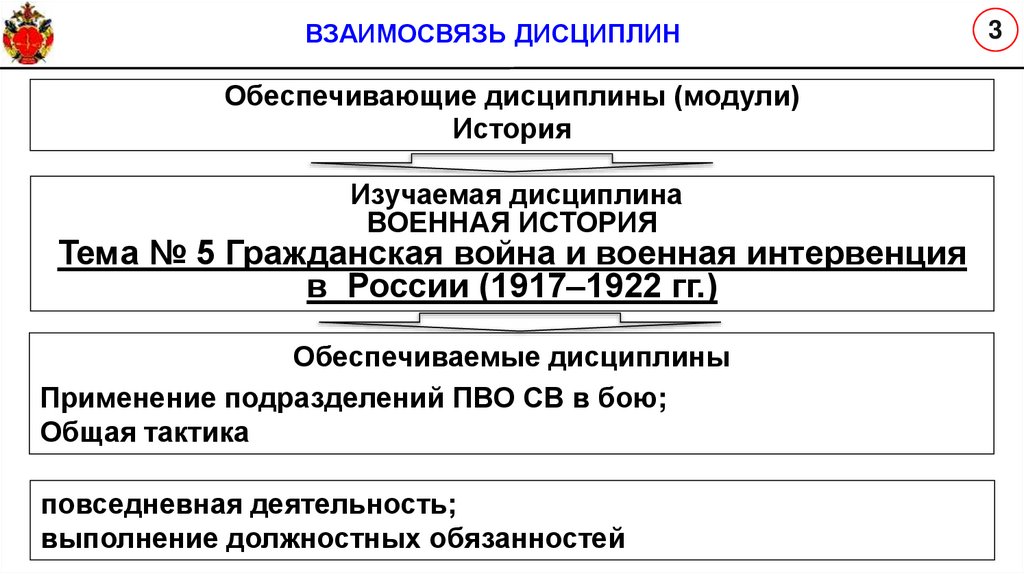 показываются значения соответствующих положений изучаемой науки для жизни, деятельности военных