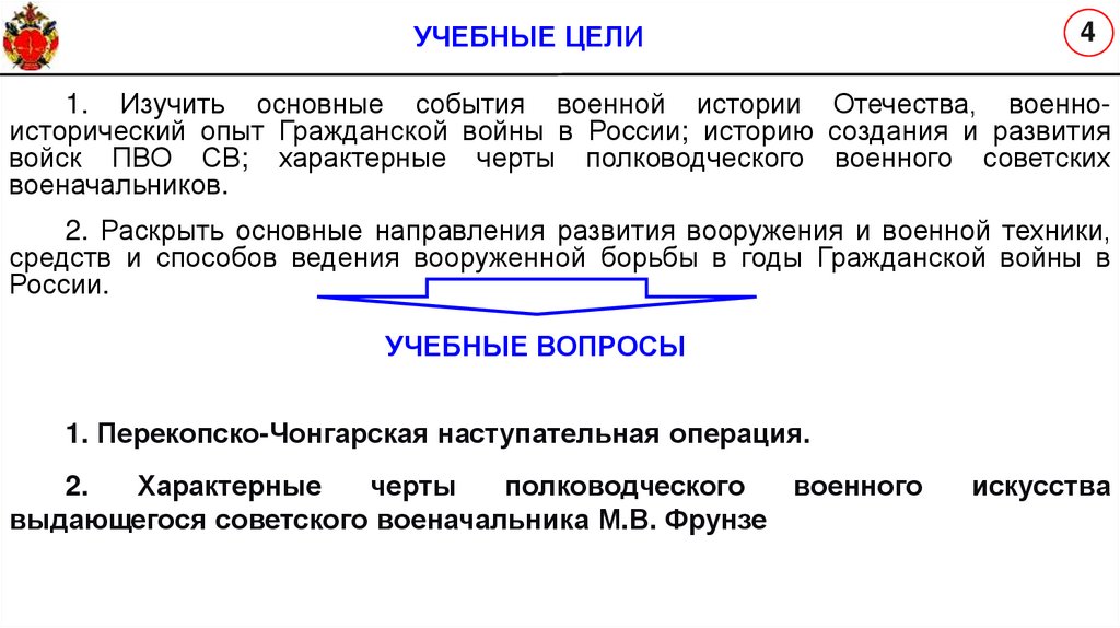 1. Изучить основные события военной истории Отечества, военноисторический опыт Гражданской войны в России; историю создания и развития