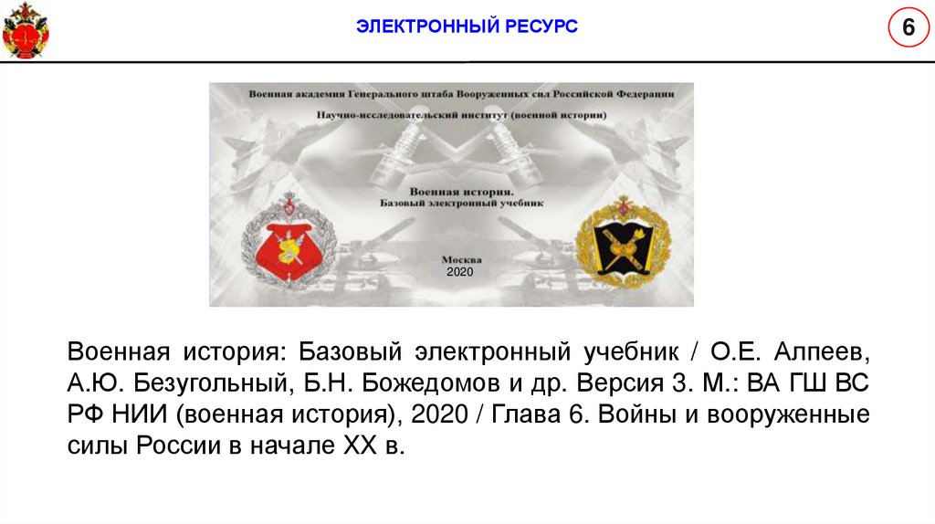 1.1 Военная история [Электронный ресурс]: базовый электрон.учебник. Версия