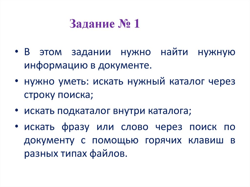 Готовимся к информатике. Задания. Использование поиска операционной системы и текстового редактора