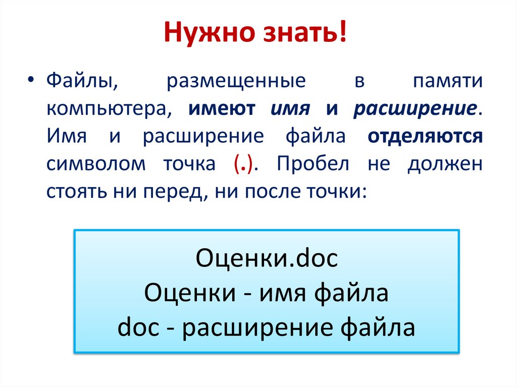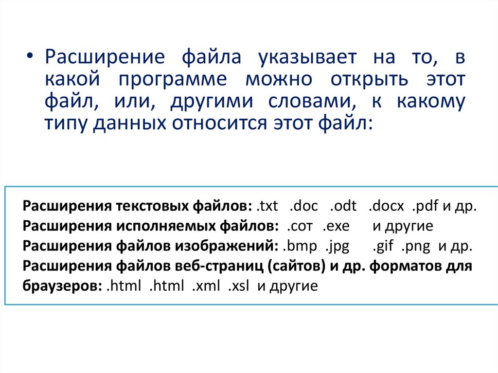 • Расширение файла указывает на то, вкакой программе можно открыть этот