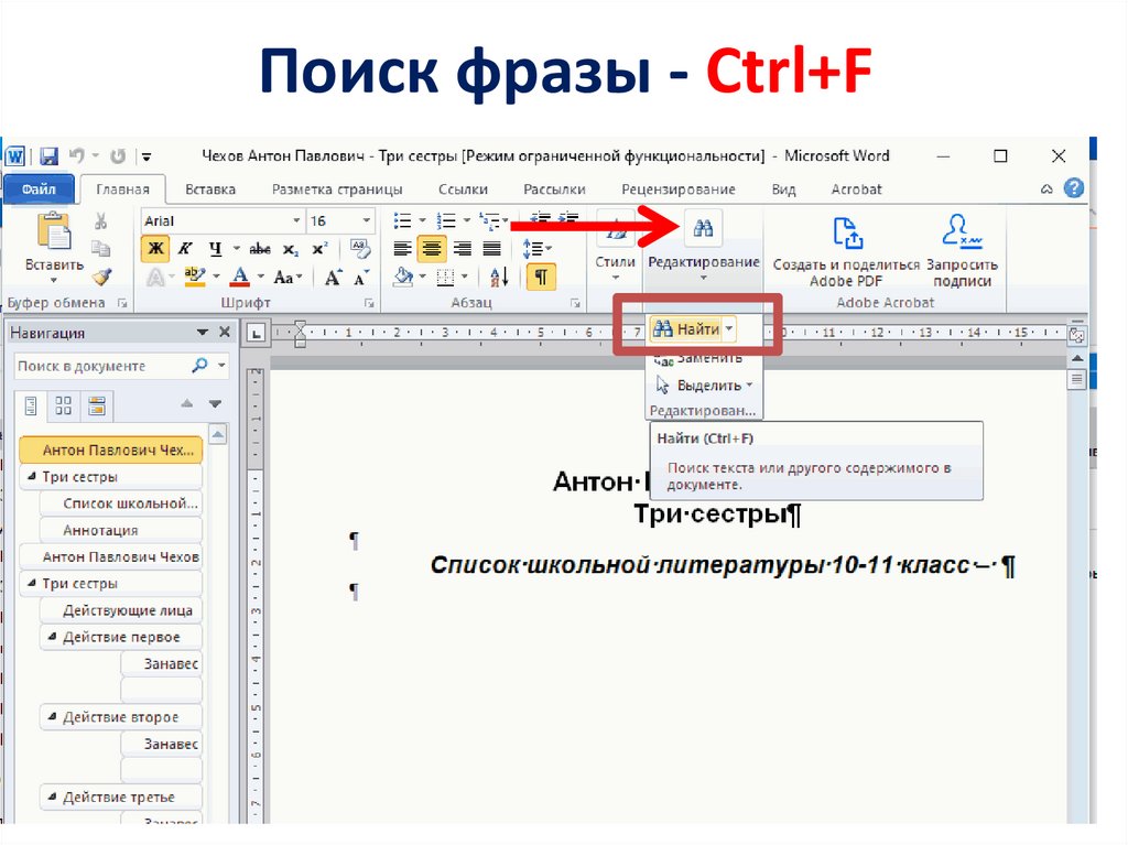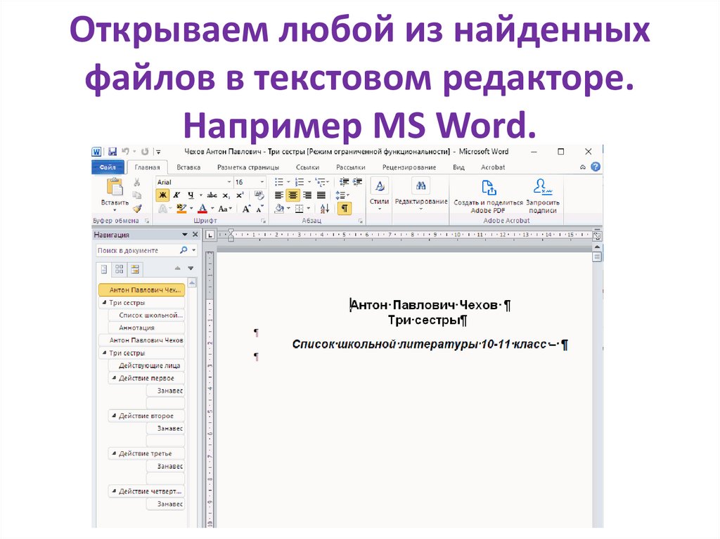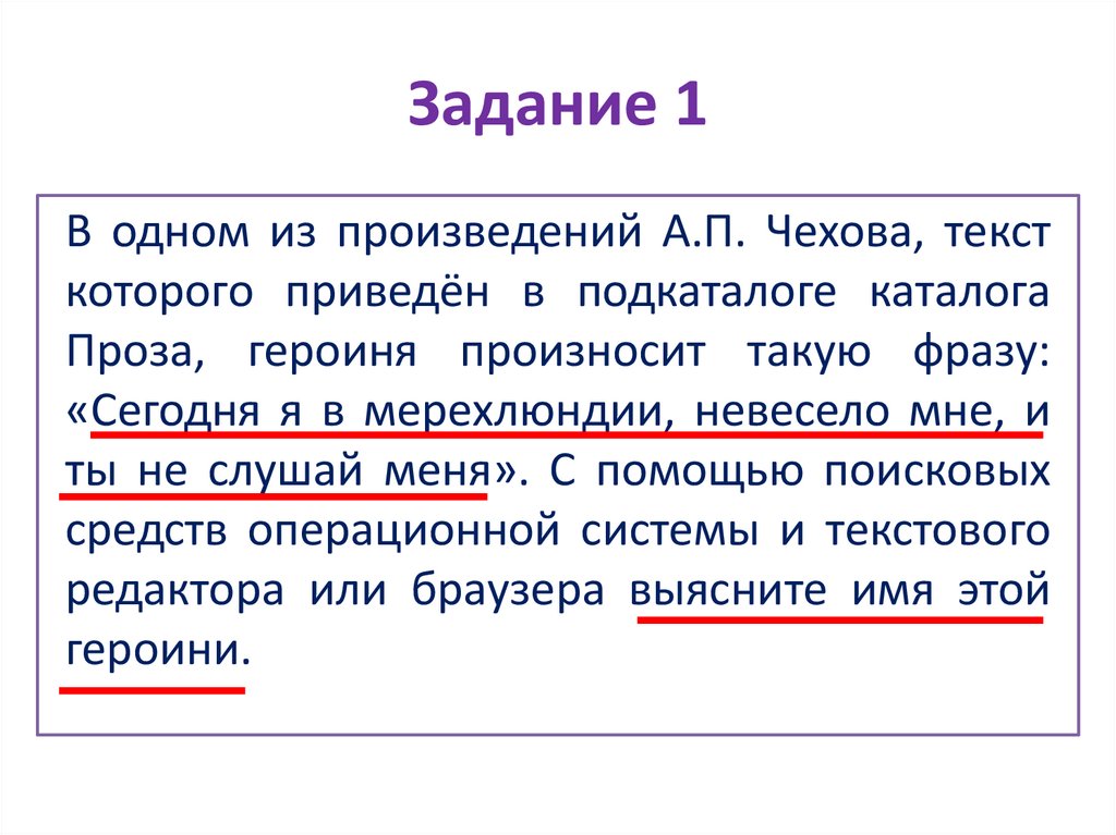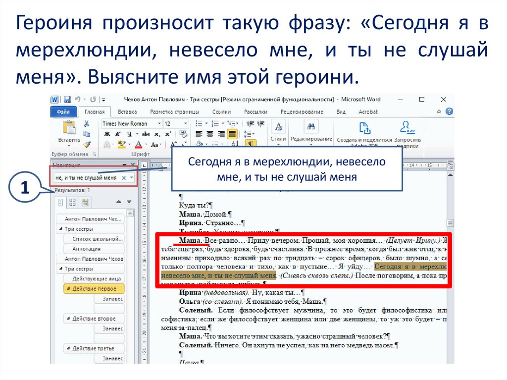 Сначала приходит мысль найти нужныйфрагмент произведения по фамилии