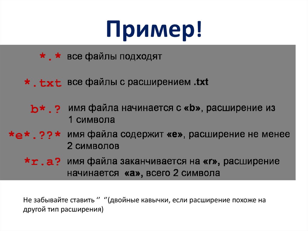 Пример!Не забывайте ставить ‘’ ‘’(двойные кавычки, если расширение похоже на