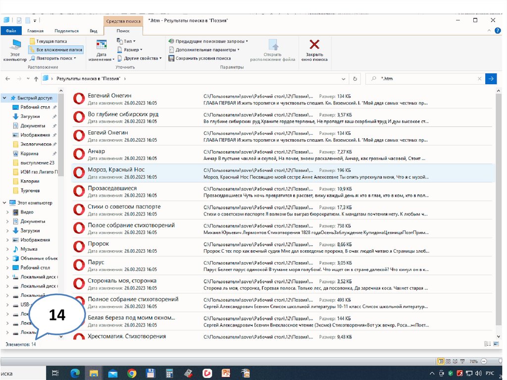 • Откроем папку (каталог) Поэзия влюбом диспетчере файлов