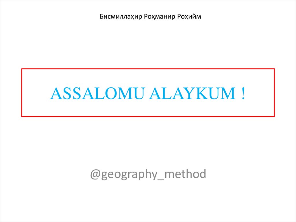 Бисмиллаҳир Роҳманир РоҳиймASSALOMU ALAYKUM !