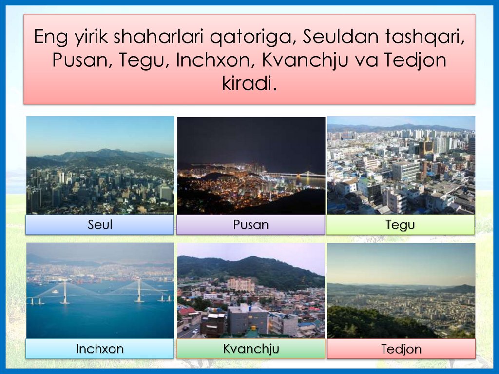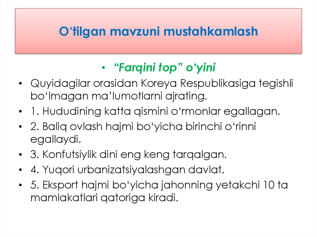 • Quyidagilar orasidan Koreya Respublikasiga tegishli