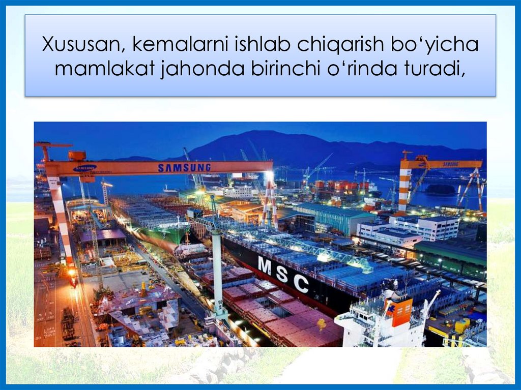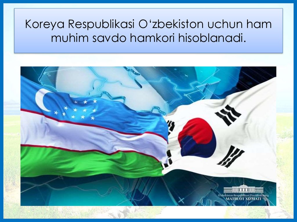 egallagan. O‘zbekistonda Koreya Respublikasi kapitali