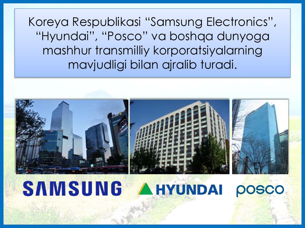 • 10. “Samsung Elektronics”, “Hyundai”, “Posco” va