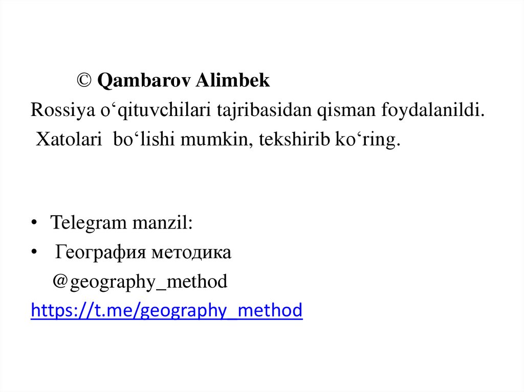 © Qambarov AlimbekRossiya o‘qituvchilari tajribasidan qisman foydalanildi.