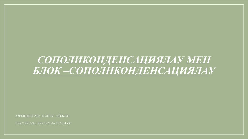 СОПОЛИКОНДЕНСАЦИЯЛАУ МЕНБЛОК –СОПОЛИКОНДЕНСАЦИЯЛАУ