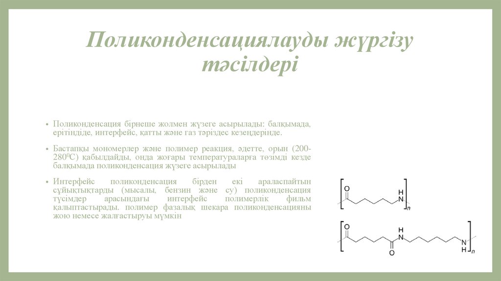 ПОЛИКОНДЕНСАЦИЯЛАУДЫЖҮРГІЗУ ТӘСІЛДЕРІ