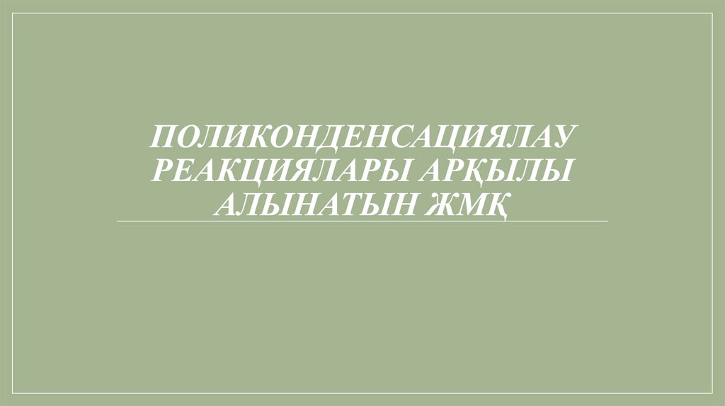 ПОЛИКОНДЕНСАЦИЯЛАУРЕАКЦИЯЛАРЫ АРҚЫЛЫ