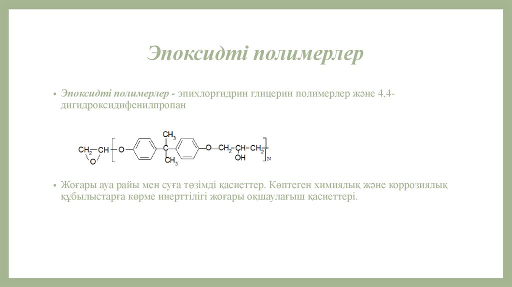 Эпоксидті полимерлер• Эпоксидті полимерлер - эпихлоргидрин глицерин полимерлер және 4,4-