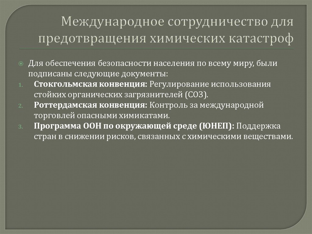 Для обеспечения безопасности населения по всему миру, былиподписаны следующие документы: