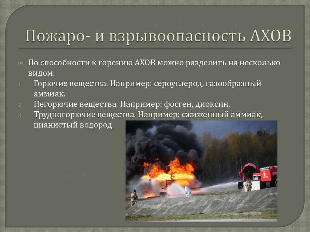 По способности к горению АХОВ можно разделить на нескольковидом: