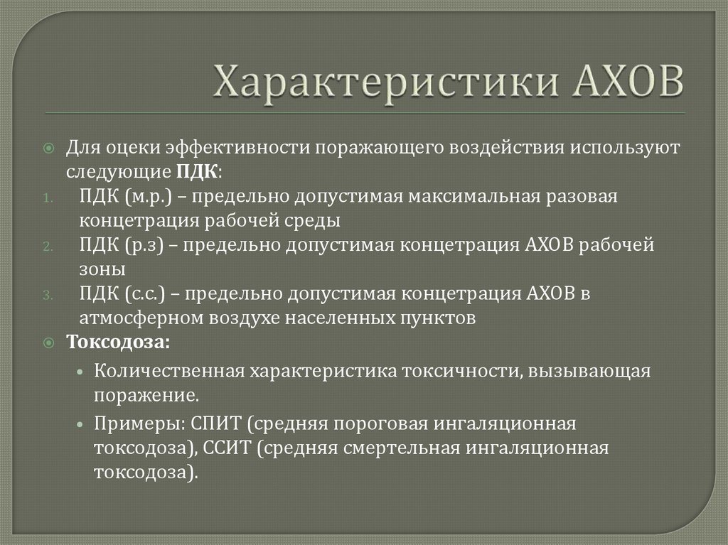ПДК (с.с.) – предельно допустимая концетрация АХОВ в