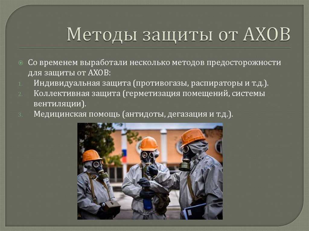 Со временем выработали несколько методов предосторожностидля защиты от АХОВ: