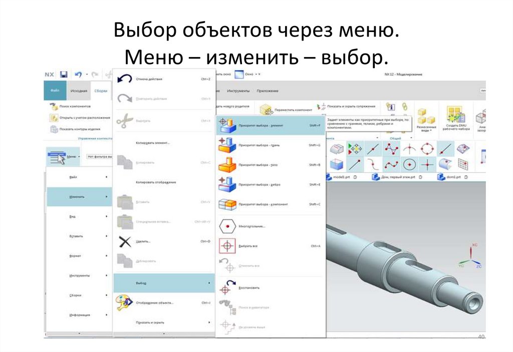 3940. Выбор объектов через меню. Меню – изменить – выбор.