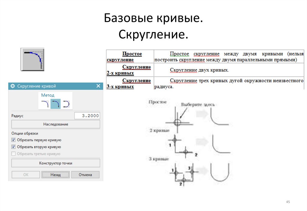 Базовые кривые.Обрезка кривых. (меню – Изменить – криваяобрезка)