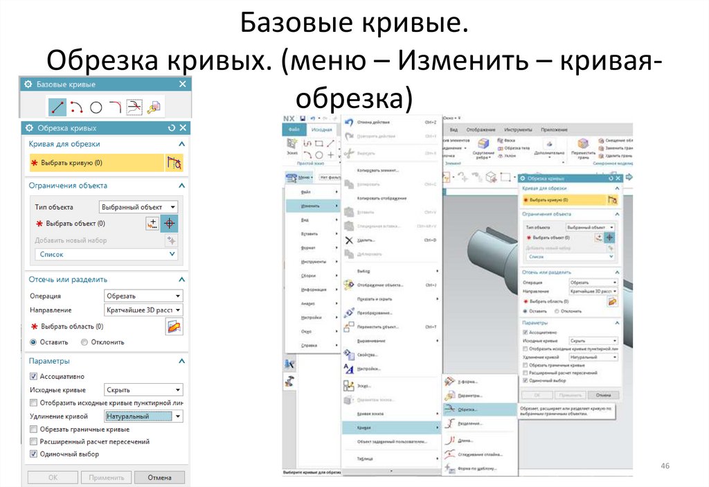 4546. Базовые кривые. Обрезка кривых. (меню – Изменить – кривая- обрезка)
