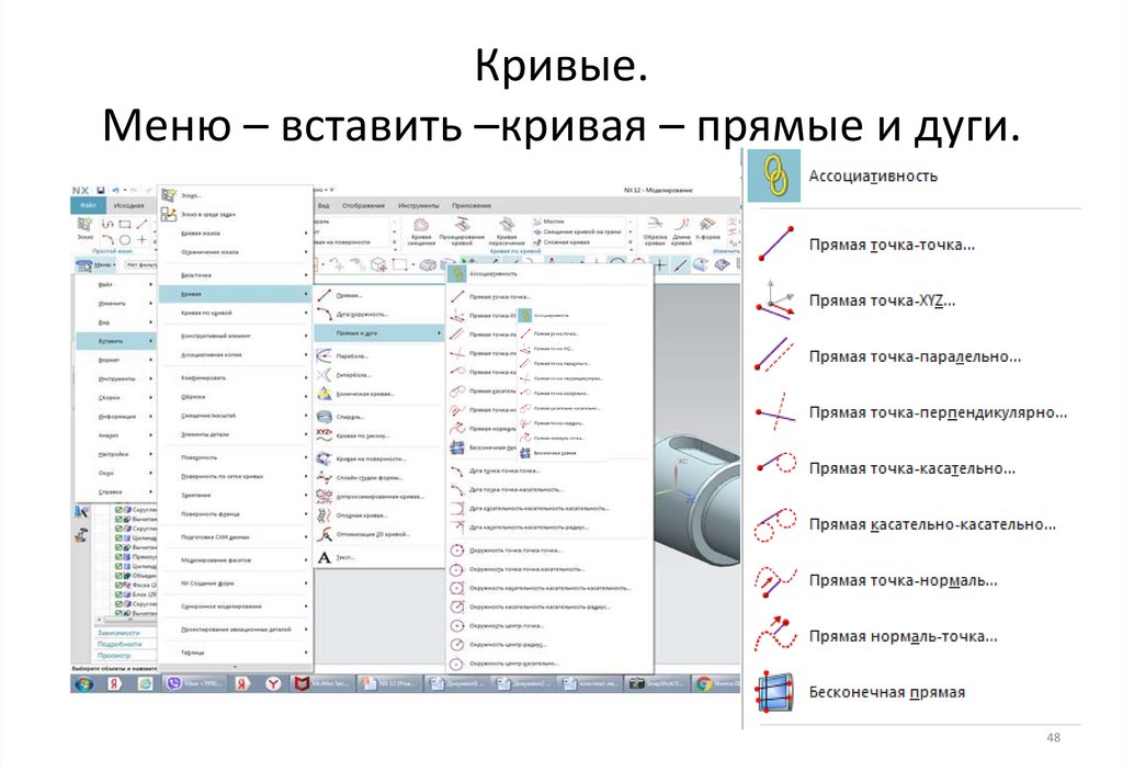 4748. Кривые. Меню – вставить –кривая – прямые и дуги.