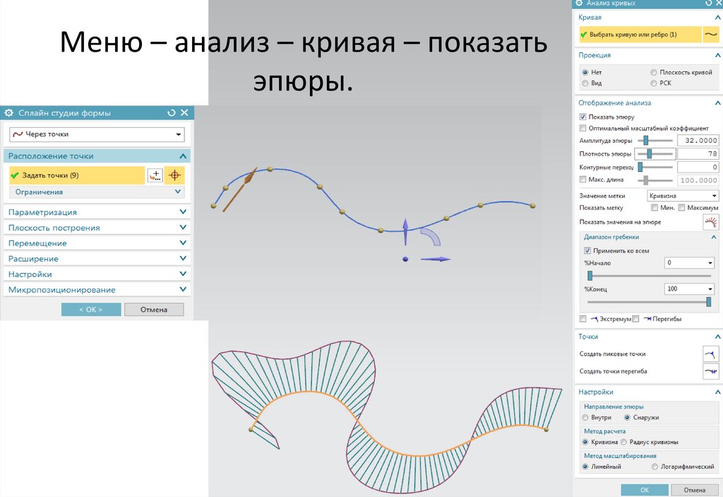 5354. Сплайн построенный по точкам. (назначение наклона и кривизны)