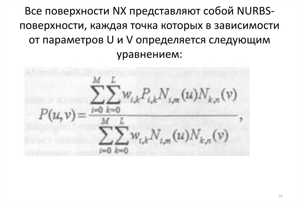 Все поверхности NX представляют собой NURBSповерхности, каждая точка которых в зависимостиот параметров U и V определяется следующим