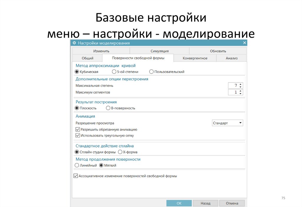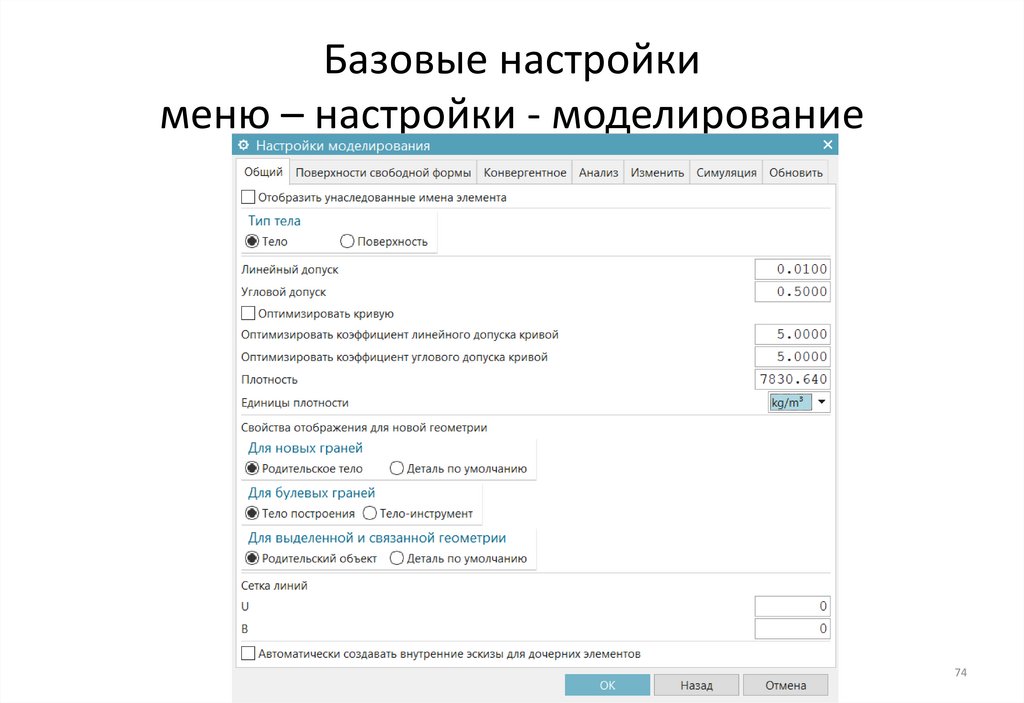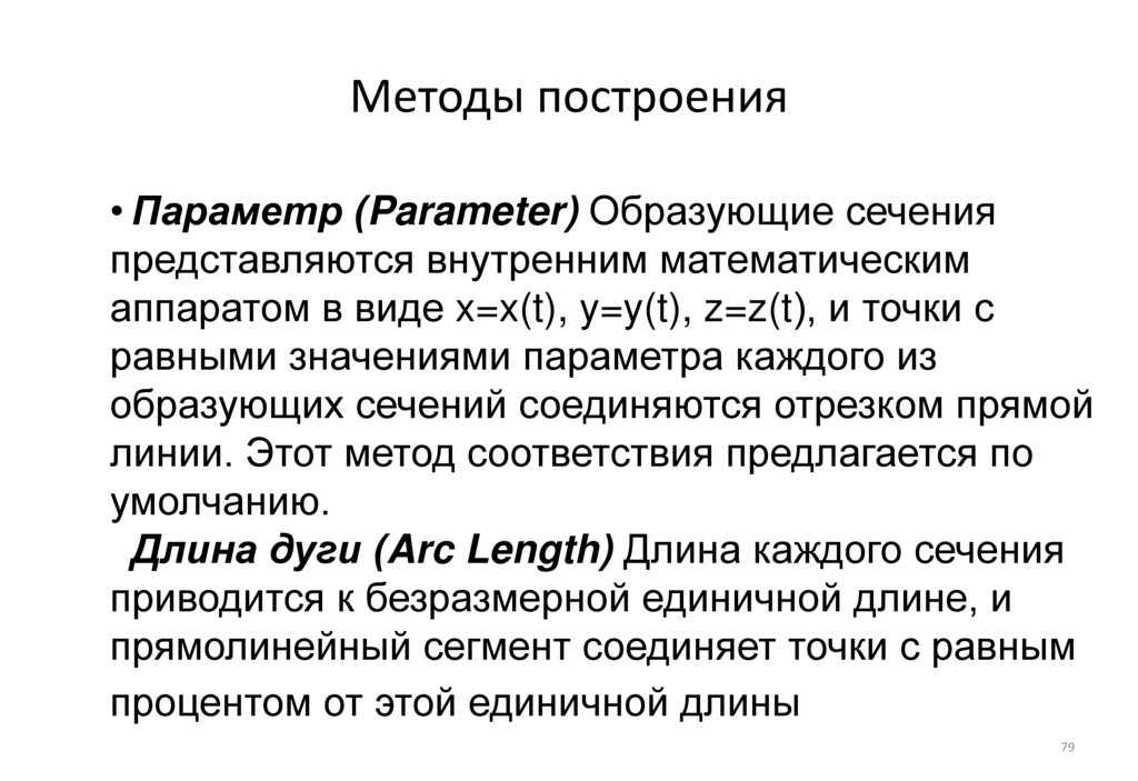 • Параметр (Parameter) Образующие сеченияпредставляются внутренним математическим