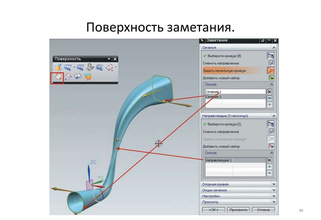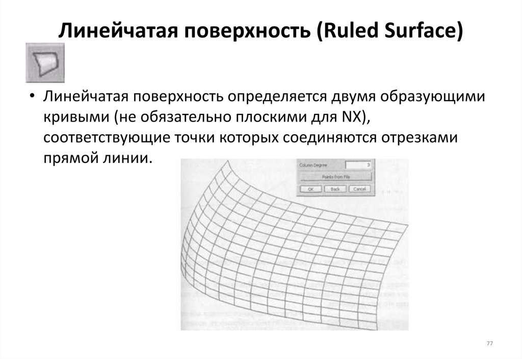 • Линейчатая поверхность определяется двумя образующимикривыми (не обязательно плоскими для NX),