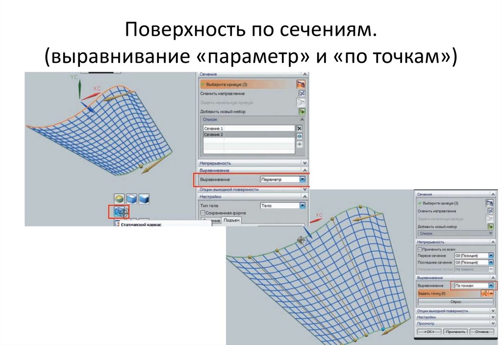 84. Поверхность по сечениям. (выравнивание «параметр» и «по точкам»)
