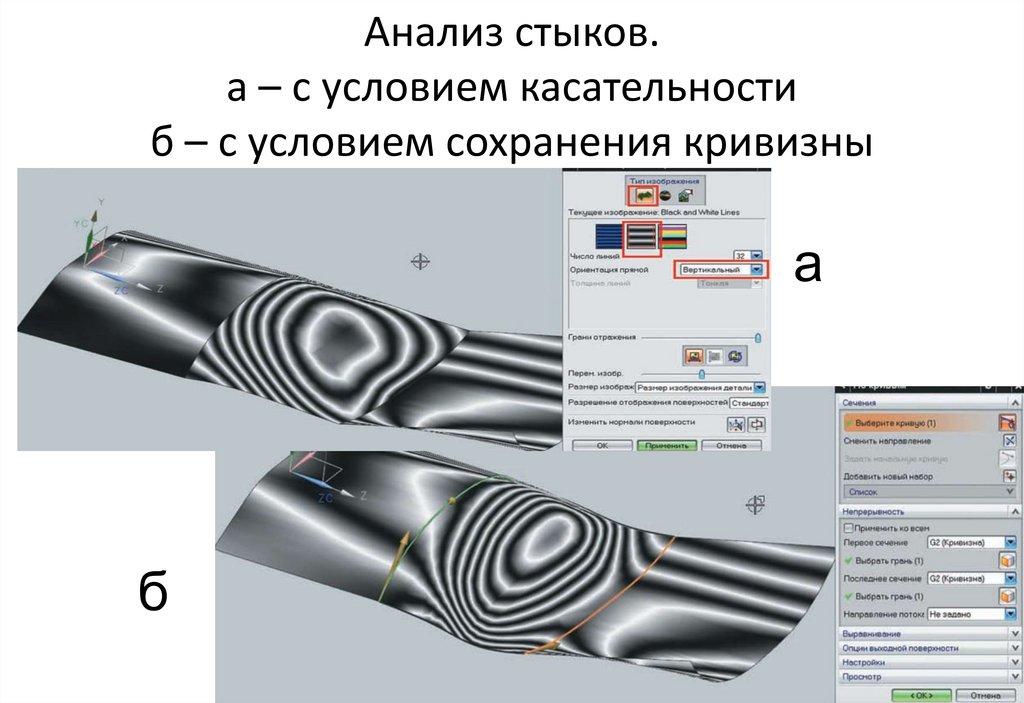 86. Анализ стыков. а – с условием касательности б – с условием сохранения кривизны