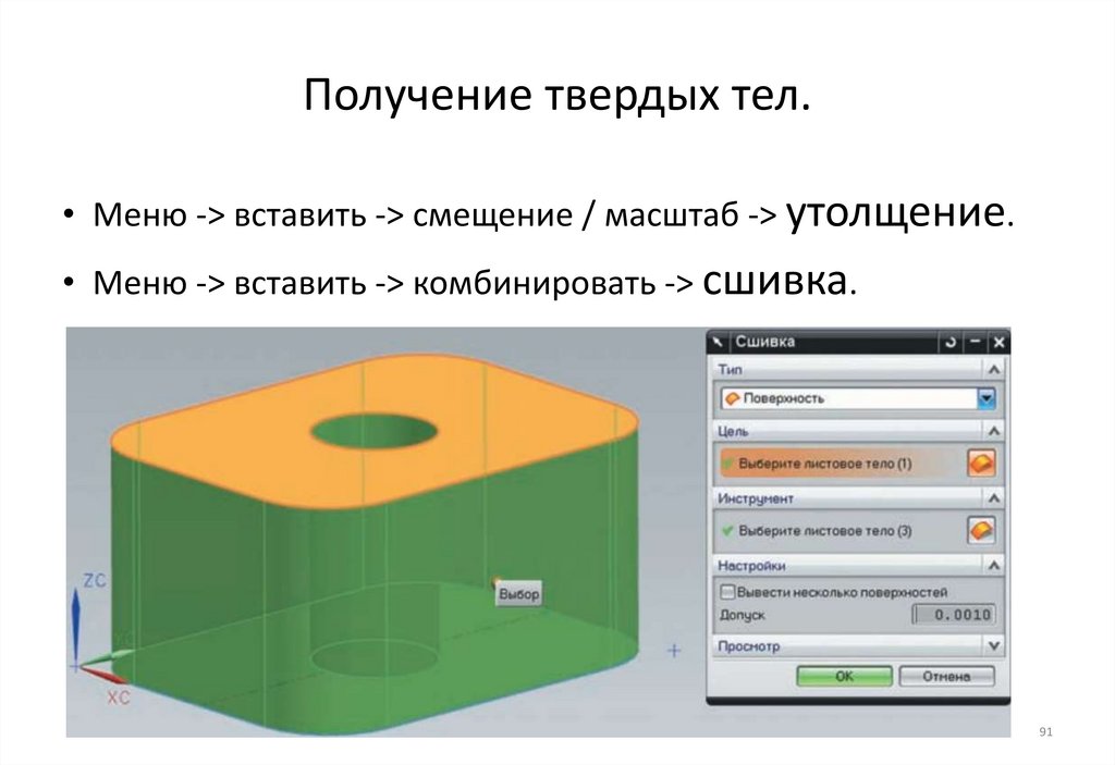 • Меню -> вставить -> смещение / масштаб -> утолщение.• Меню -> вставить -> комбинировать -> сшивка.
