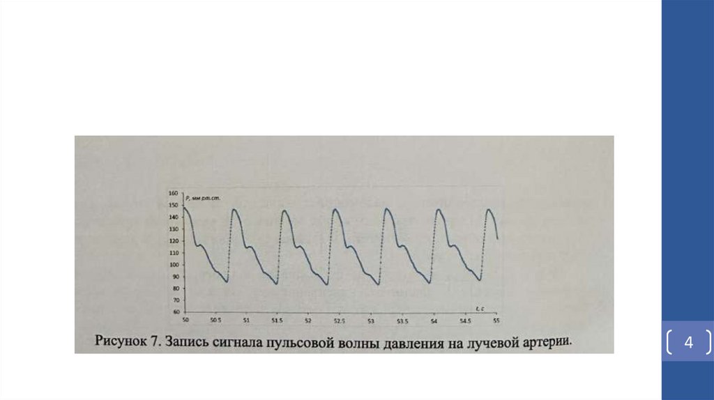 Запись сигнала пульсовой волны движения на лучевой артерии