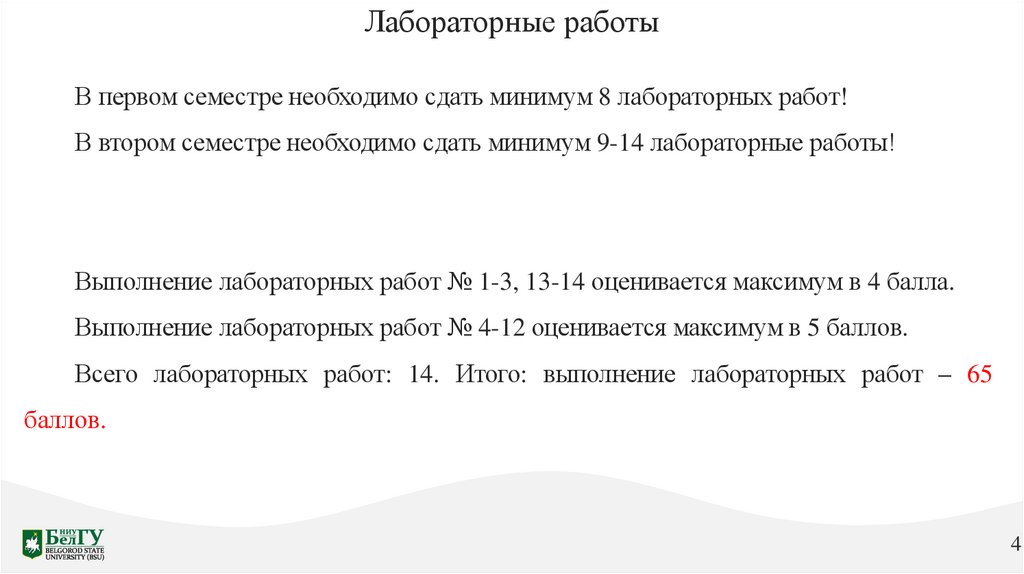 Выполнение лабораторных работ № 1-3, 13-14 оценивается максимум в 4 балла.
